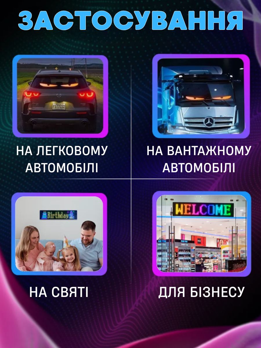 Цей LED-дисплей — спосіб виділитися на дорозі та показати характер своєї машини. Гнівний погляд, посмішка чи підморгування — ти обираєш сам!