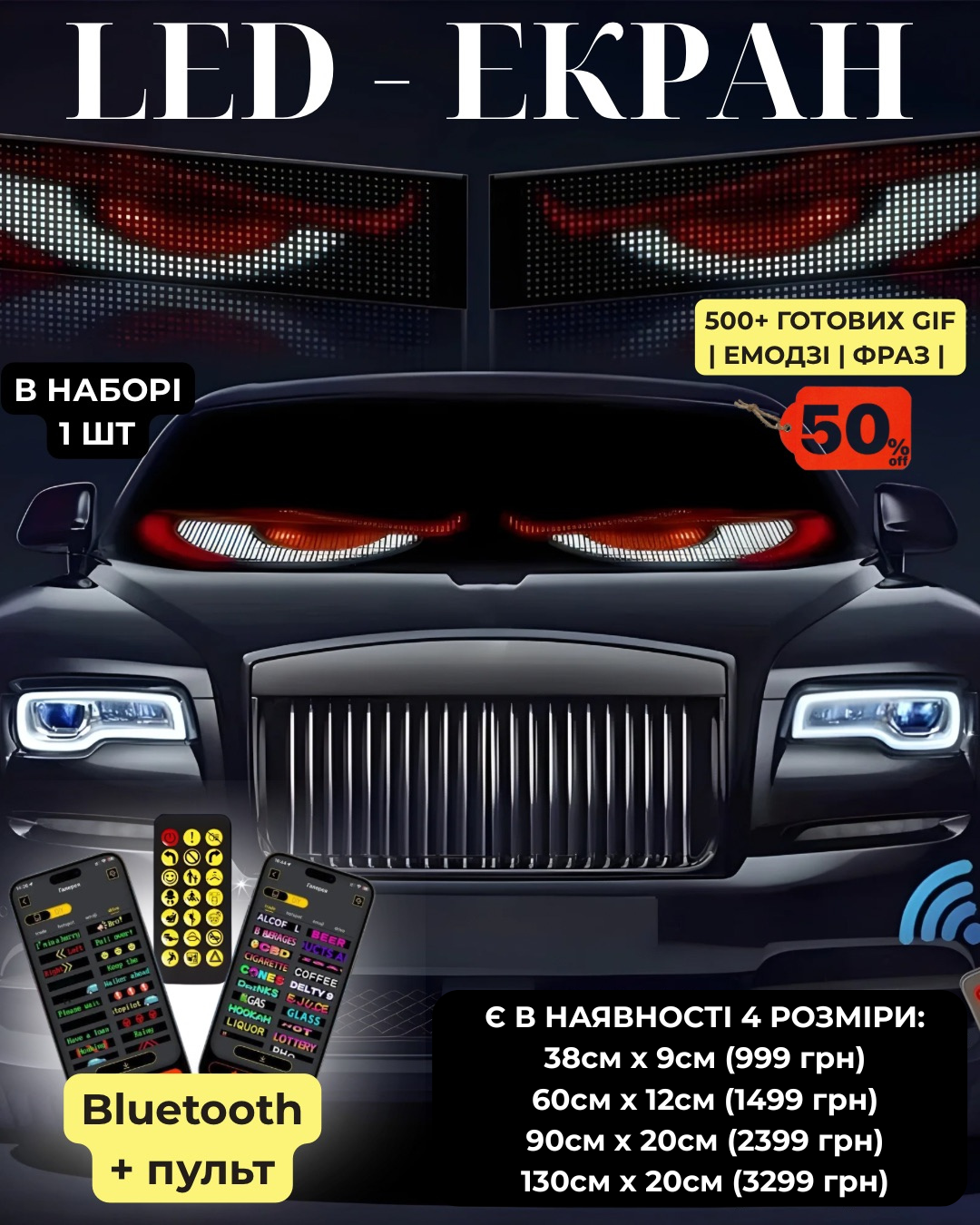 Цей LED-дисплей — спосіб виділитися на дорозі та показати характер своєї машини. Гнівний погляд, посмішка чи підморгування — ти обираєш сам!