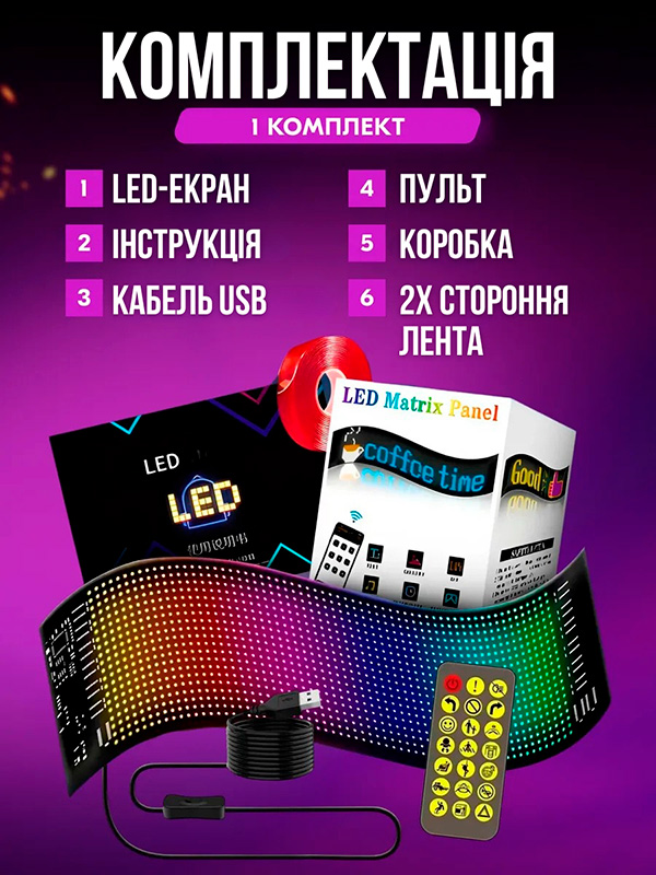 Пристрій підтримує керування через додаток APP Bluetooth, що дозволяє легко змінювати ефекти, малюнки та анімації просто зі смартфона. Ви можете встановити будь-яке світлове зображення — від стандартних сигналів до креативних повідомлень.