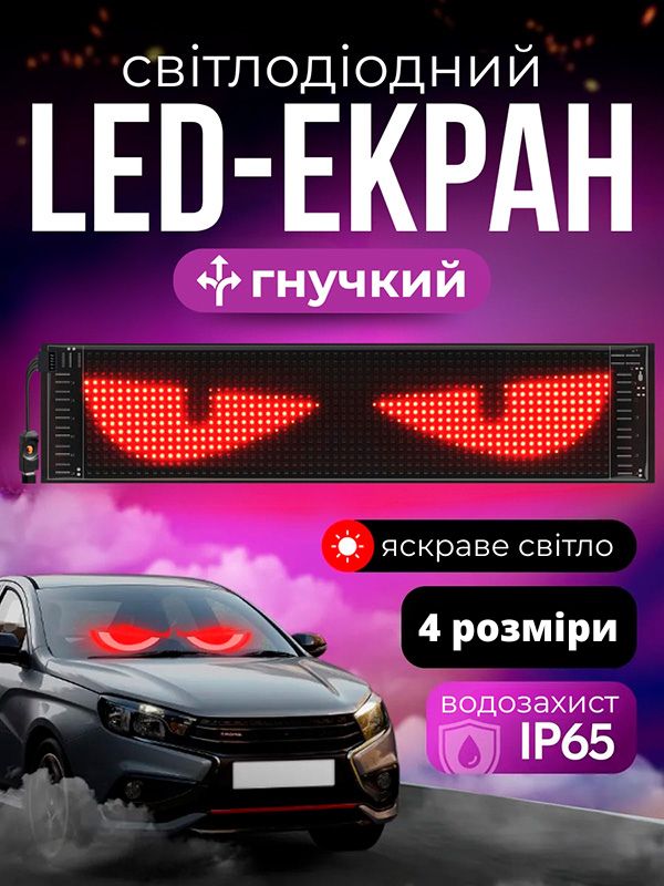 Світлодіодний дисплей Devil Eye підходить для всіх, хто хоче надати своєму автомобілю індивідуальності та сучасного вигляду: власників легкових авто, таксі, служб доставки, учасників автопоказів і любителів тюнінгу. Він стане чудовим вибором для тих, хто прагне виділитися на дорозі, підвищити безпеку руху завдяки яскравим світловим сигналам і створити ефектний візуальний стиль свого транспорту.